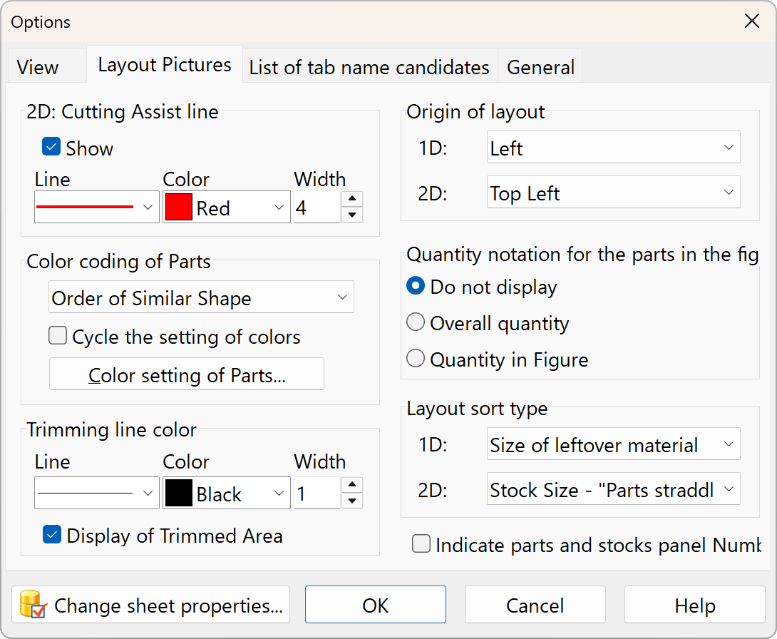 Specify which side to align the parts panel on. The layout remains the same, but the orientation of the cutting pattern changes.