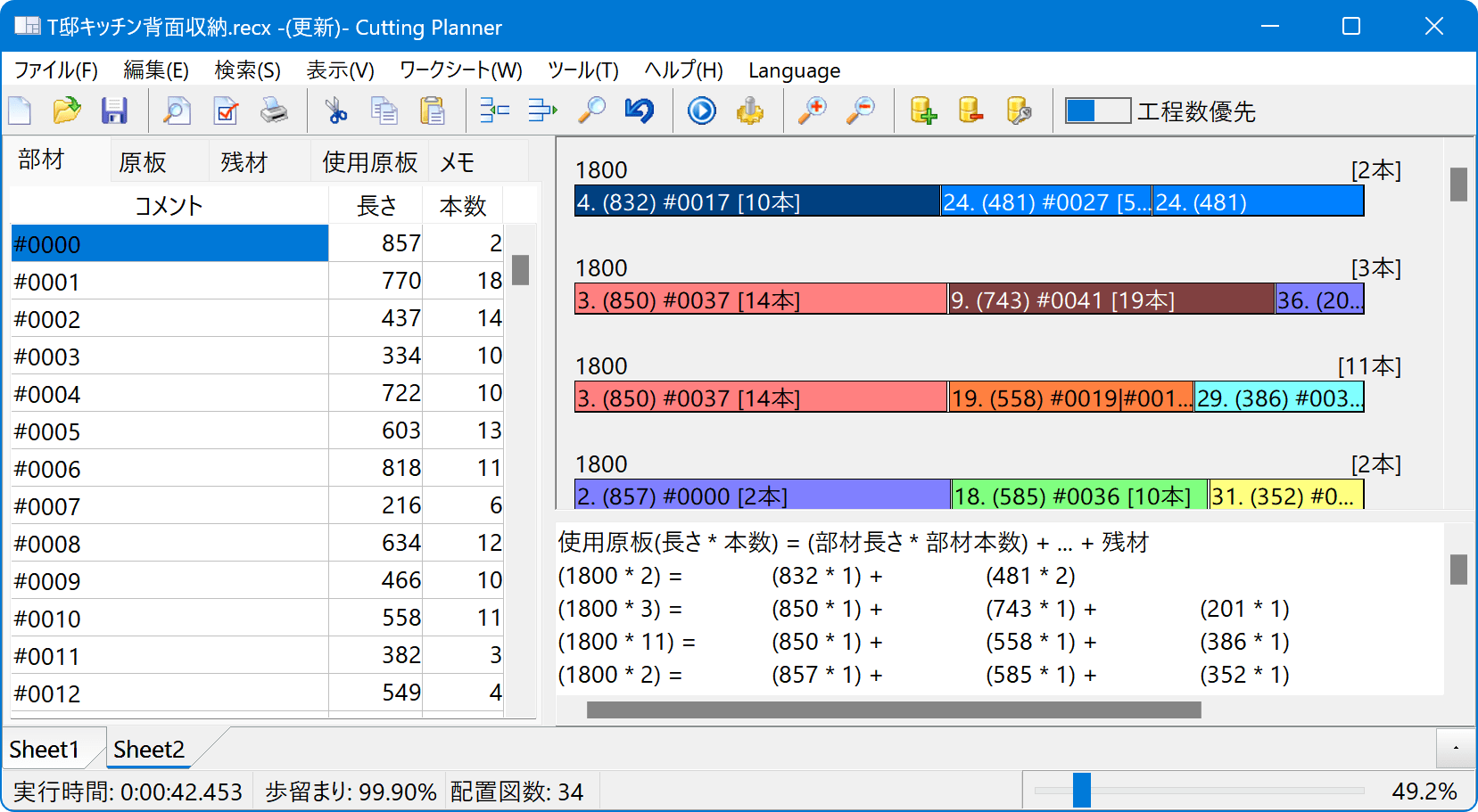 材料と部材のサイズを入力するだけで、切断計画を提案します。